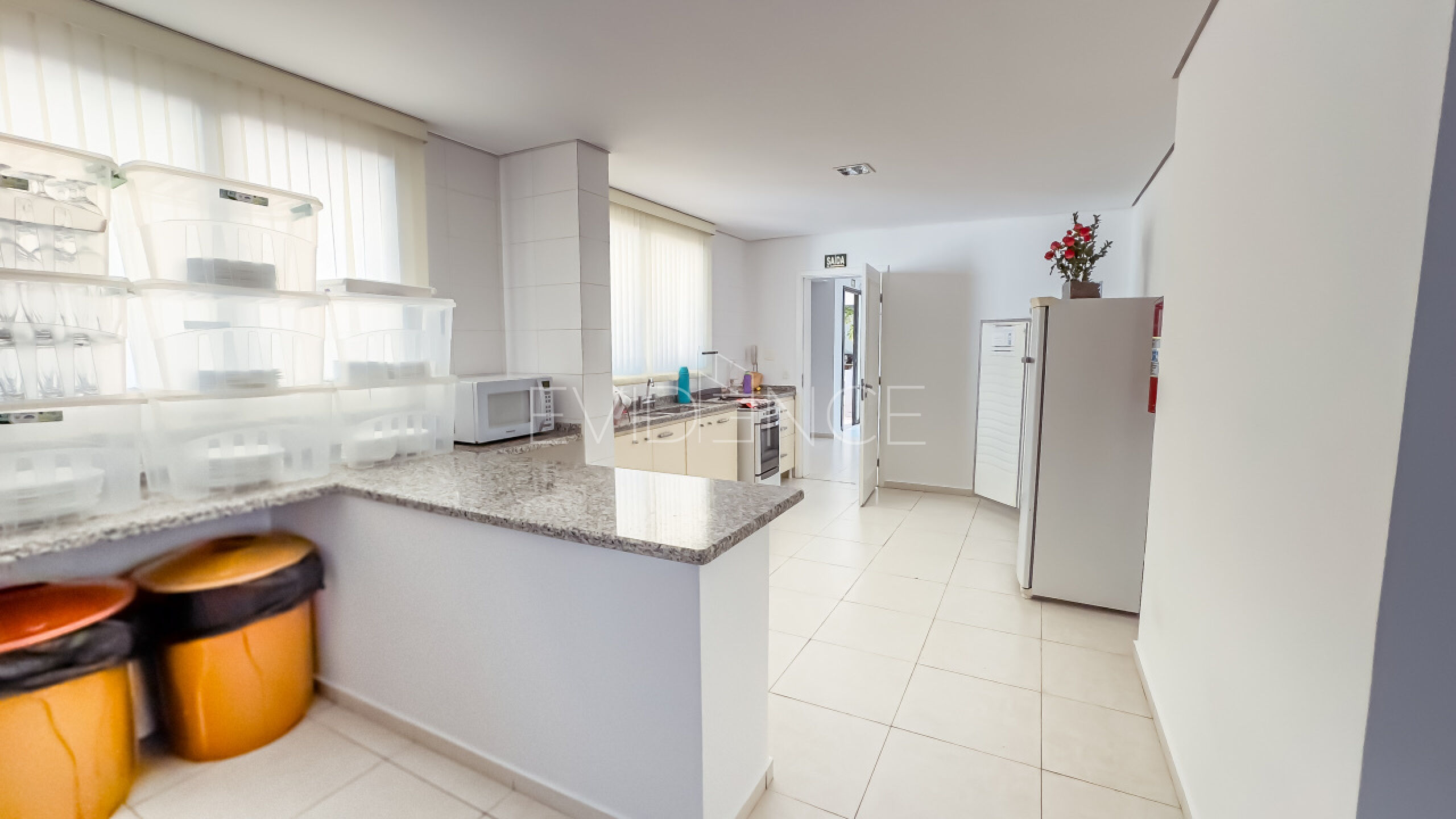 O terraço com churrasqueira é perfeito para momentos de lazer e confraternização, enquanto a lareira na sala de estar cria um ambiente acolhedor e elegante para relaxar. A varanda possui piso de granito, conferindo sofisticação e durabilidade ao espaço externo. O banheiro da suíte máster é revestido em mármore branco, oferecendo luxo e requinte, enquanto o lavabo possui piso de travertino, trazendo elegância e estilo aos detalhes. Os tampos e pias em granito completam os acabamentos de alta qualidade em todos os ambientes.
