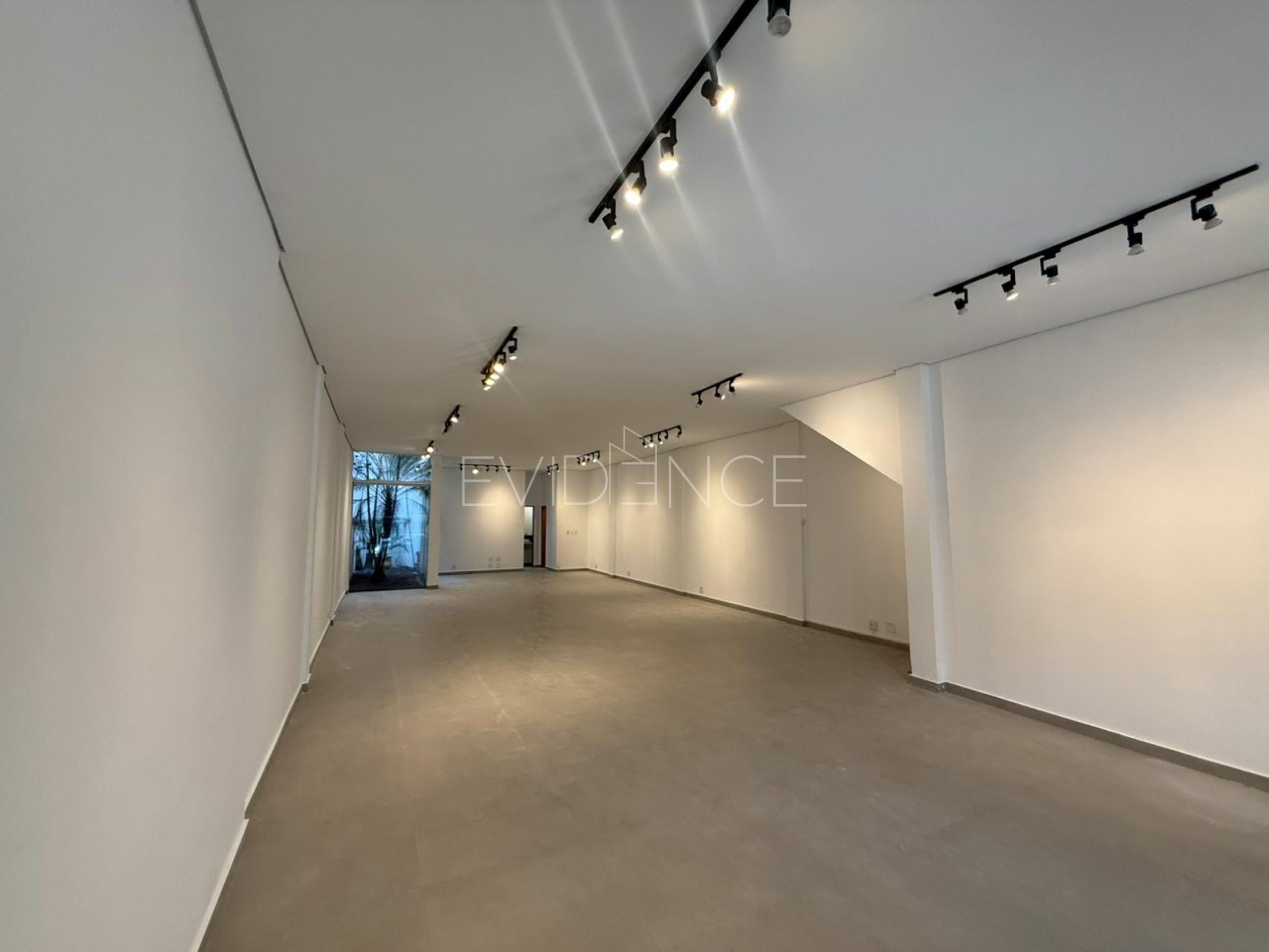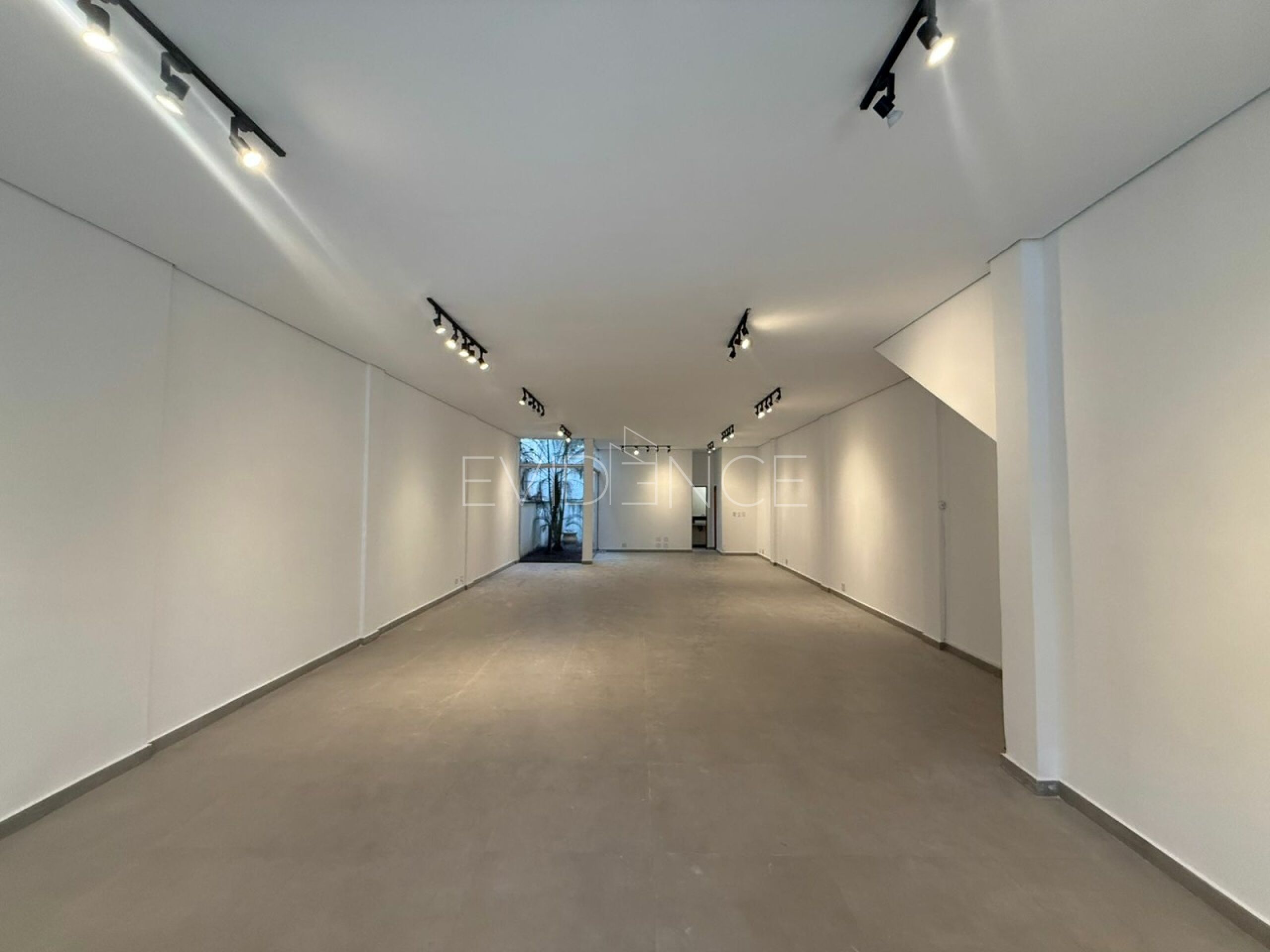 Salão comercial de 175 m² em vão livre, com vagas para clientes, banheiros, jardim de inverno, portão automático, 2 banheiros e 3 vagas de garagem.